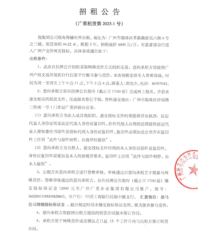 招租公告(开云链接入口站官网_开云(中国)租赁2023-1号)