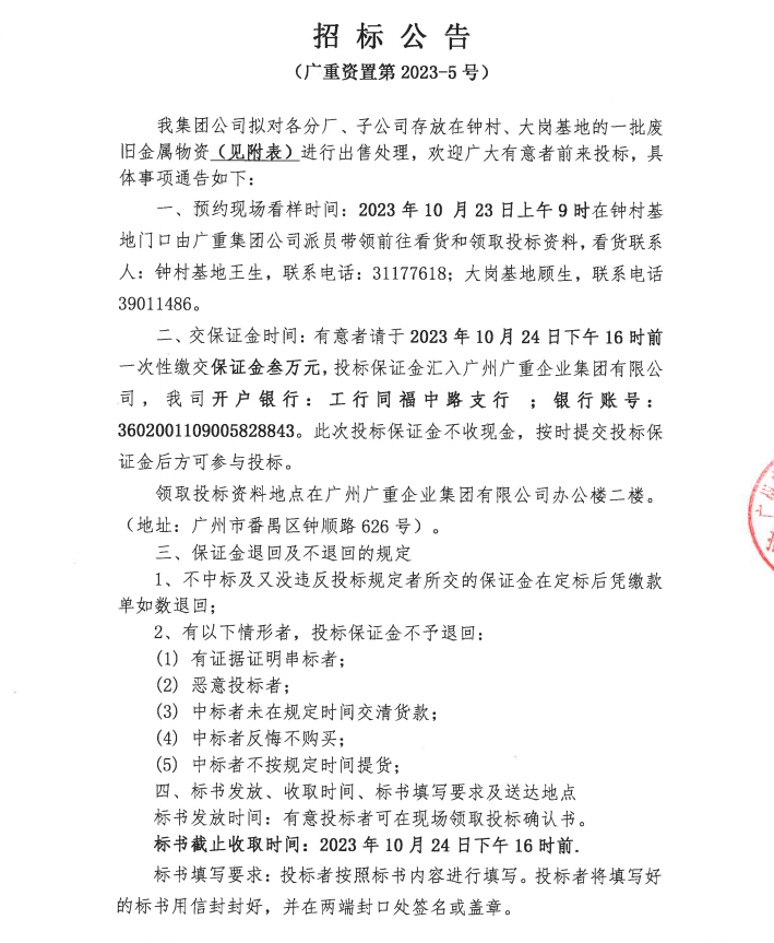 废旧金属物资处置(开云链接入口站官网_开云(中国)资置2023-5号)